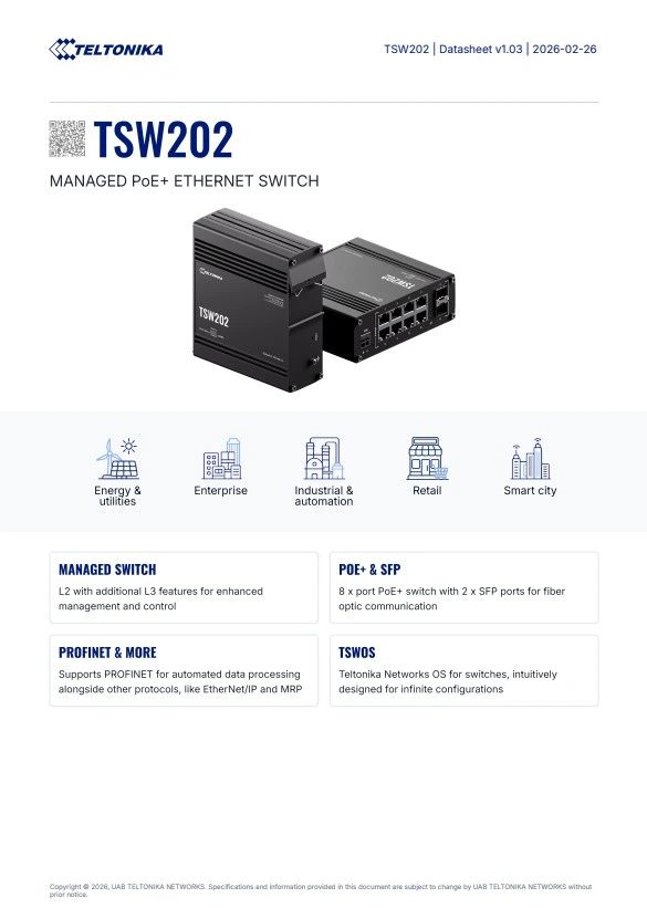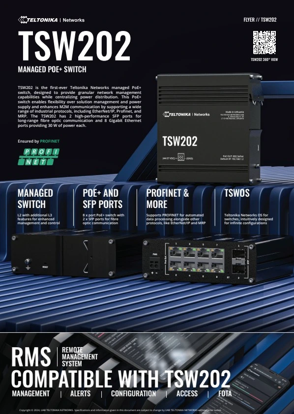 De TSW202 is de allereerste beheerde PoE+-switch van Teltonika Networks,